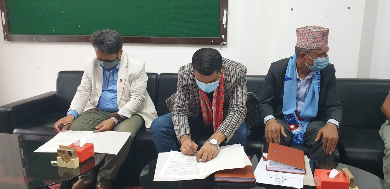 ANFA President Karma Tshering Sherpa and Bagmati Province Sports Development Council Member Secretary Surya Lal Bhandari signed the agreement in Hetauda on Friday.